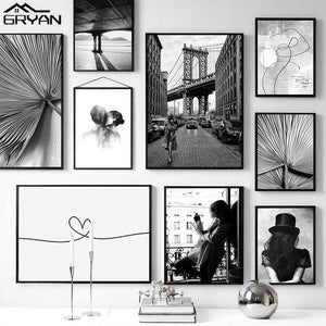 • Nordic Black White Retro Fashion Women Wall Art Canvas Poster Abstract Kiss Matisse Line Print Painting Botanical Leaves Picture 1