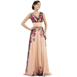 • Women Sexy Floral Dress Sleeveless Elegant V neck Long Dress Evening Party Prom Bridesmaids Chiffon Dresses